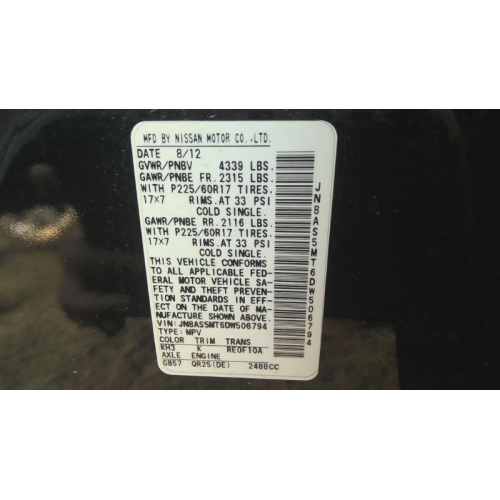 #25149, 2013 Nissan Rogue, black with gray interior, 4 cylinder engine, automatic transmission, (damage=bad transmission)