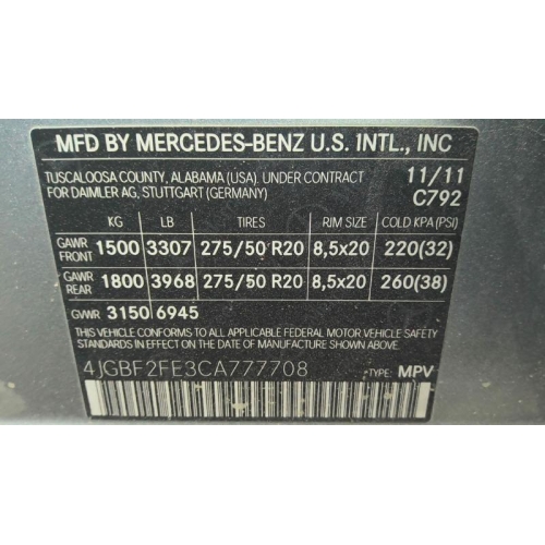 Used 2012 Mercedes Benz GL350 Parts Car - Silver with black interior, 6cyl engine, automatic transmission