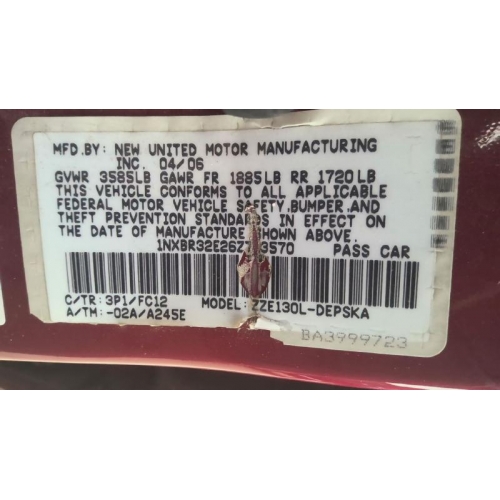 Used 2006 Toyota Corolla Parts Car - Red with black interior, 4-cylinder engine, Automatic transmission