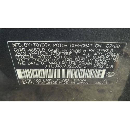 #25144, Used 2008 Lexus ES250 Parts Car - Gray with black interior, 6 cylinder engine, Automatic transmission (damage=right front)