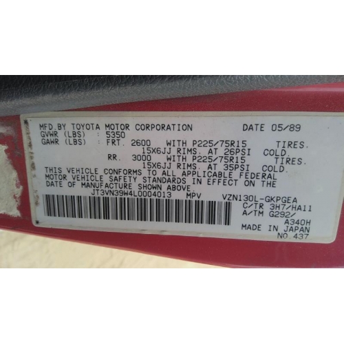 Used 1990 Toyota 4Runner Parts Car - Red with gray interior, 6cyl engine, automatic transmission