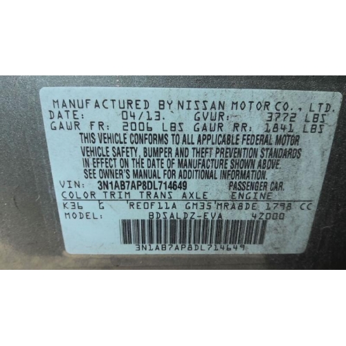 Used 2013 Nissan Sentra Parts Car - Silver with black interior, 4cyl engine, automatic transmission