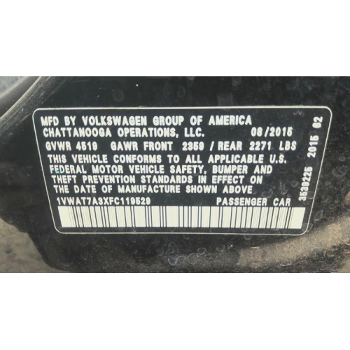 Used 2015 Volkswagen Passat Parts Car - Black with black interior, 4-cyl engine, automatic transmission
