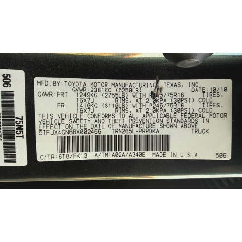 #25141 Used 2011 Toyota Tacoma Parts Car - Green with gray interior, 4 cyl engine, automatic transmission (damage=rear)