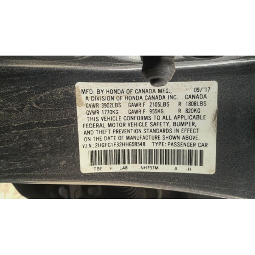 #25153, Used 2017 Honda Civic Parts Car - Gray with black interior, 4cyl engine, automatic transmission (damage=front)