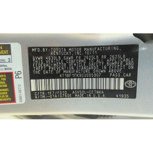 Used 2012 Toyota Camry Parts Car - Silver with gray interior, 4-cylinder engine, automatic transmission