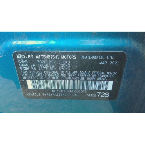 Used 2021 Mitsubishi Mirage Parts Car - Blue with black interior, 4 cyl engine, automatic transmission
