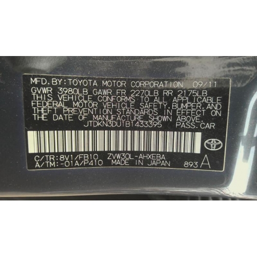 Used 2011 Toyota Prius Parts Car - Gray with gray interior, 4cylinder engine, automatic transmission