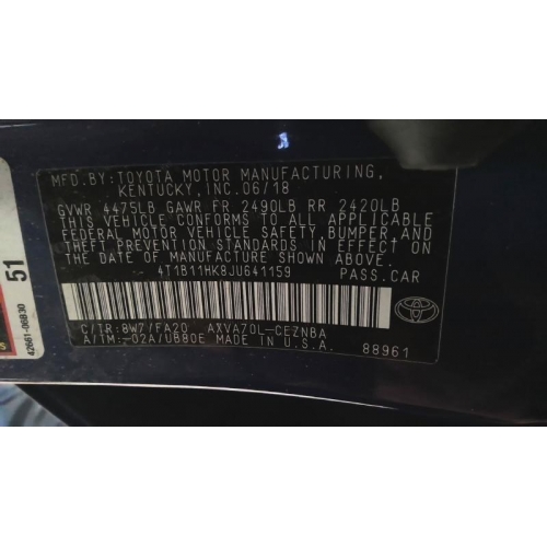 Used 2018 Toyota Camry Parts Car - Blue with black interior, 4-cylinder engine, automatic transmission