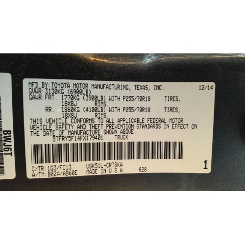 Used 2015 Toyota Tundra Parts Car - Gray with black interior, 8-cylinder engine, automatic transmission