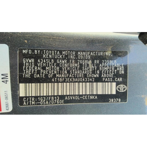 Used 2010 Toyota Camry Parts Car - Gray with gray interior, 4-cylinder engine, Automatic transmission